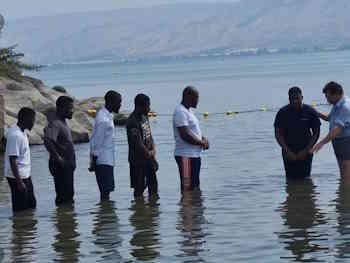 Despite the many and real concerns about Iranian coordinated attacks on Israel, we were able to spend a short but spiritually intense time with our beloved brethren in the Galilee area. They are all students or migrant workers; many of those previously baptized have now returned to their homelands but have shared the Gospel with others who have come to replace them. Usage of the Bible Companion app is critical in all this- they work hard long hours on farms 6 days / week, and on the Sabbath, there is no public transport, and the farms are typically far from it anyway. So, it's their one day / week to rest and wash their clothes. The Bible Companion app is a lifeline for them, providing Bible teaching and spiritual encouragement in their very difficult lives. But despite Saturday being their day off, we began collecting the baptism candidates at 06:30 on the Saturday morning and got them all home again afterwards. No small logistical feat with only one car and 8 people to transport. We had so many spiritual conversations- sister Marie, originally from Rwanda and doing her Master's degree, lives near the Spring of Harod where Gideon was taught that the Lord saves by many or by few. And many other such places with Biblical connections. Brother Francis was especially grateful- he had wanted to be baptized on the last two visits, but his boss had at the last minute made him work on the Sabbath. But finally, he was free this time.