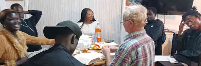 We had an unexpected group tonight, an amazing story of how God gathers people together. Designed by the Spirit of God. The angels really are working. This is what happens when one meets up with a school friend from many years ago and talks to them... The group in the photo up until a few weeks ago didn't know brother Chol, and we didn't know them. Then tonight one new young man came... The young man in this photo on Phil's right, his father was baptised by bro Duncan's father in Africa many years ago. And this young man was baptised by bro Duncan, approx. 6 years ago. He left high school and life happened, and a family breakdown happened.... but last week Chol meet him.... they did not know who each other was, but Chol invited him along. And so, we all reconnected.