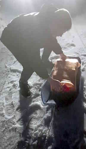 So we stopped the car and took the firewood by hand and on young David's beloved, re-found toboggan. The feral dogs were howling and all around. We had the video going most of the time and you can hear the boys alone deciding they want to go out and do the work rather than just sit in the car watching dad. So they did their runs- loading the toboggan and then dropping the firewood at the arranged pick up points. You may or may not find it fascinating to hear David, Daniel and Duncan chatting about grace, about whether to turn back or go forward, who should risk facing the dogs, praying spontaneously when we got stuck in the snow or lost traction on the ice, or when we couldn't go forward but there seemed no path back. Great conversations. That night, and the Spirit of it, will surely remain in those young minds. So the recording