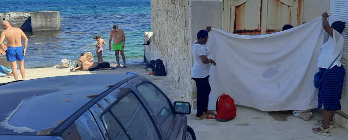 Italian beaches are "liberal" with nudity quite common and nobody has much complex about stripping off. Our African sisters set a far more modest example, again to the curiosity of the local Italians, with two of them holding up a sheet for the sisters to change behind, seeing they were baptized fully clothed and then changed into another set of clothes: