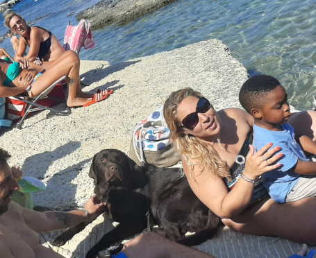 Blessing's little boy was rather concerned to be parted from his mummy. But an Italian sunbather quite naturally opened her arms to him and he sat safe with her, and got a cold drink and candy as well: