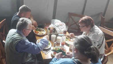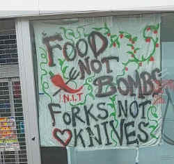 The offer of free food was clearly not the sole motivating factor in attendance. There was quite a range- from nurses to people in emergency shelters. But it is clear that with rampant inflation, the cost of living crisis is making it attractive to have at least one meal met. We noticed graffiti as we did our bills which indicates the pressure on food for many ordinary folks: