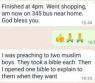 We've also kept up street distribution of the New Testaments supported by our sisters in Clapham, resulting in so many interesting contacts and chats. Sister Saida is such a great street preacher, we left her alone with the last box of New Testaments to finish off, opposite Brixton tube station, and she reported as follows about her experiences as a Christian woman preaching alone in an Islamic part of London: