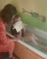 Very frail, we called up Russell and Dawn to drive over and assist in helping her up the stairs to a bath tub, which she never uses, and with difficulty the three of us helped her to be baptized in it: