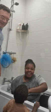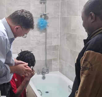 Later in the week we travelled to brother Lincoln in Liverpool and assisted him in baptizing his contact CRAIG. Craig was just the model of humility before the Lord, thanking the Lord and ourselves in tears for His grace, and after being baptized in Lincoln's bath tub he immediately got to his knees in heartfelt prayer. You can see him here with his NEV Bible. Lincoln's outreach to family and people around him is just amazing and amazingly blessed by God.