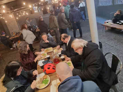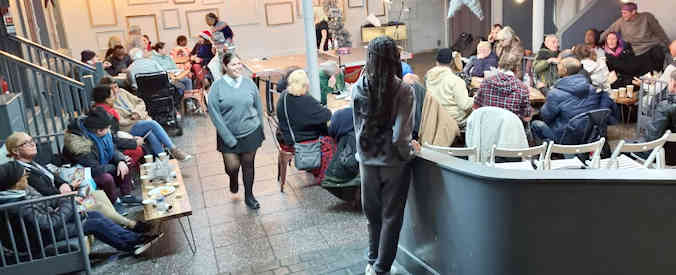 Carl and Emil seem typical. They work together at a hospital, and one lunch time, they and another man were chatting in lunch break. Emil said he'd like to be baptized into Jesus but was sceptical of churches he'd visited. The other man said that he follows Croydon Church in a Pub online and they preach the Bible and baptize people with no other agenda. And he recommended Emil follow us. Then Carl said that he too had turned to Jesus Christ and would like to be baptized, but was also sceptical of churches having had a family member become a JW many years ago. And so Carl and Emil followed us and contacted us. Then with the help of the app and online contact, decided for baptism. The initial plan had been to do the baptism in the sea near where they live, but the cold snap was really bitter so we gave in and after some hours discussion in a coffee shop, with joy we baptized them in a swimming pool [no cameras allowed in public swimming pools so no pics]. Here we are after our three hour session in the coffee shop on that bitterly cold day: