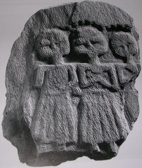 Photo: A small plaque of schist from Bath, England with three female figures representing the ‘three mothers’, a triad of deities. These triads of mother goddesses were common in the West of Britain in the early Roman period, probably reflecting an earlier Iron Age tradition. Original in the Roman Baths Museum, Bath UK.