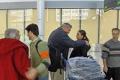 Here's Mona almost asleep standing up, with her IOM tag, as we went from pillar to post with the red tape. And finally, finally ... passing through the final security and on towards the plane.