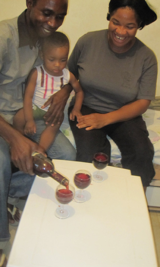 Our work is mainly with the Russian and African communities. We met with brother Samuel, whom we baptized three years ago, and were delighted to find him so strong in the faith and having been clearly blessed by God in his life. His wife HELEN has been able to come and join him, and they now have a child. We were very pleased to baptize her, with great joy on her part, and then celebrate the Lord's sacrifice together. Here's brother Samuel pouring out the grape juice [not win!] for the service: