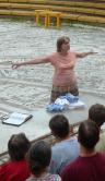 Photos: One of the nine baptized; enthusiastic Bible discussion in the evenings; John speaking with Bro Alexei translating; sister Luba sharing her joy in Christ