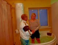 The week they were over saw the baptism of two very different sisters; DZINTRA, wife of brother Yuri, seen here with her husband, and