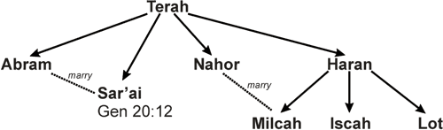 Gen 20:11 Abraham said……12 Besides she is indeed my sister, the daughter of my father but not the daughter of my mother; and she became my wife.