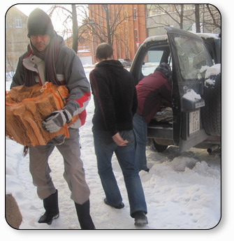 This week's Carelink is coming to you from the back seat of a car! Bro Michael Boler is currently driving myself (Rachel Harrington) and Duncan to the back of beyond... Duncan has been grabbing 40 winks as he had only a few hours earlier returned from Belgium. Sis Vanessa Boler is back at base camp (Riga ecclesial hall) and finding many useful things to do! (clearing and sorting). We are going to a funeral service in a small town in Eastern Latvia for a Sister called Nina who died earlier this week. It was one of her last requests that Duncan should bury her [made only a few weeks ago, when Bro Charles Abel and the Bartons visited her- as if she had a strange premonition that her instant death from a heart attack was imminent]. By all accounts her faith was strong and she was very contented with her lot even though she had a hard life as a subsistence farmer in this cruelly cold climate [she was featured on Carelinks reports several times, and the Bartons recently gave her much help and encouragement].
