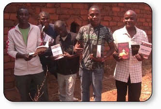 (l-r) Bre Emmanuel, Andrew, Symon, Hackwell and Samson with books recently sent them.