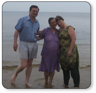 Sis. Sandra and Skaidrite; being greeted after baptism by Sister Suzi and then by Skaidrite's son-in-law. Bro Andrei.