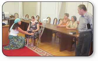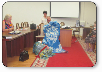 Sister Viktorija as Naomi with Sis. Vera as Ruth; who then slept at the feet of Boaz [Bro. Anatoly]
