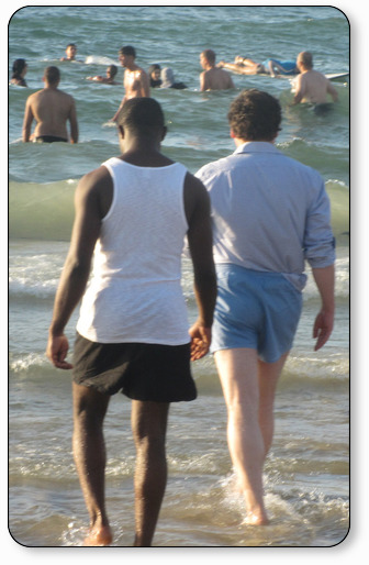 We were also pleased to baptize an African Jew, MATTHEW. We baptized him on the beach in Tel Aviv, amidst crowds of people simply enjoying themselves in the heat, without, apparently, a thought for their Creator. Russians, Jews, Arabs, Europeans of all kinds, were all escaping the high temperatures in the sea, whilst we quietly baptized our new brother. In the photo you can see some conservative Arab women, wearing their headscarves, cooling off in the sea just a few meters from where we baptized our brother:
