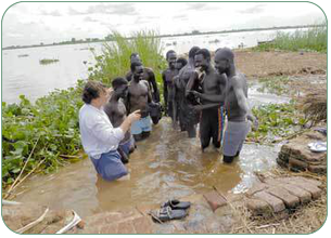 After that we journeyed to Malakal, a garrison town on the troubled border with the North. Most people there are in the security forces. It?s cut off by Darfur to the West, Northern Sudan to the North, and rebel militias on the other sides. The reason for coming here was our outstanding brother Amos, a third generation Kenyan Christadelphian who has been working there for some time with a construction company. His work involves him traveling around a lot, and in doing so he has managed to teach many people about the true Gospel. These are all kinds of people, ranging from young men from cattle herding tribes who have grown up with nothing but violence, cattle rustling etc., right through to fellow Kenyan ex-pat contractors and professionals. It was with great joy therefore that we baptized ten brothers and one sister in the River Nile: